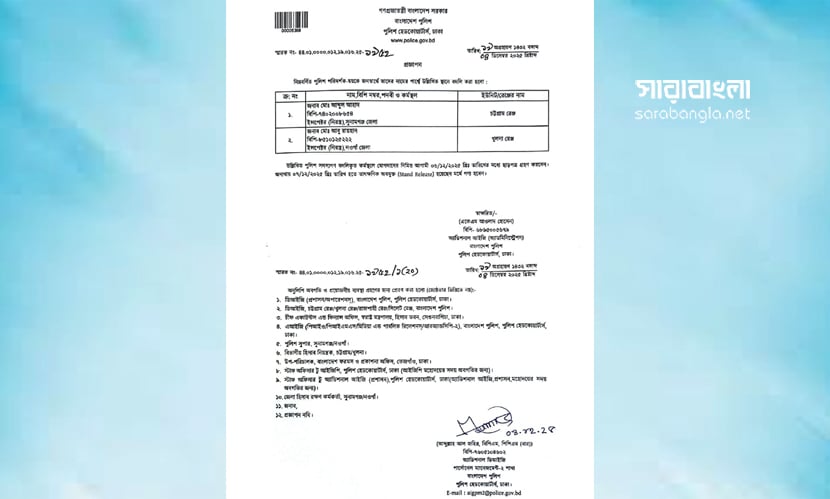 ওসি আব্দুল আহাদকে চট্টগ্রাম রেঞ্জে বদলি জারির প্রজ্ঞাপন।