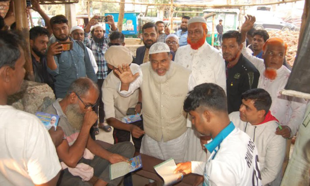 গণসংযোগকালে ভোটারদের কাছে হাতপাখার পক্ষে ভোট প্রার্থনা করেন মাওলানা খলিলুর রহমান।