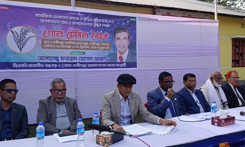 শনিবার (৬ ডিসেম্বর) বিকেলে পঞ্চগড়ের দেবীগঞ্জ পাবলিক ক্লাব চত্বরে আয়োজিত সামাজিক যোগাযোগ মাধ্যম ও কৃত্রিম বুদ্ধিমত্তার অপব্যবহার রোধ শীর্ষক গোল টেবিল বৈঠকে প্রধান অতিথির বক্তব্যে তিনি এসব কথা বলেন।