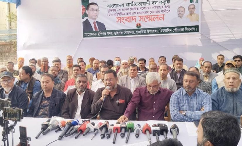 সংবাদ সম্মেলনে জেলা বিএনপির সদস্য আতোয়ার হোসেন বাবুল জানান, সদর ও গজারিয়া উপজেলা বিএনপির তৃণমূল নেতৃবৃন্দের সই করা একটি লিখিত আবেদন ভারপ্রাপ্ত চেয়ারম্যানের নিকট জমা দেওয়া হয়েছে। সেখানে বর্তমান প্রার্থীকে প্রত্যাহার করে মো. মহিউদ্দিনকে মনোনয়ন দেওয়ার অনুরোধ জানানো হয়েছে।