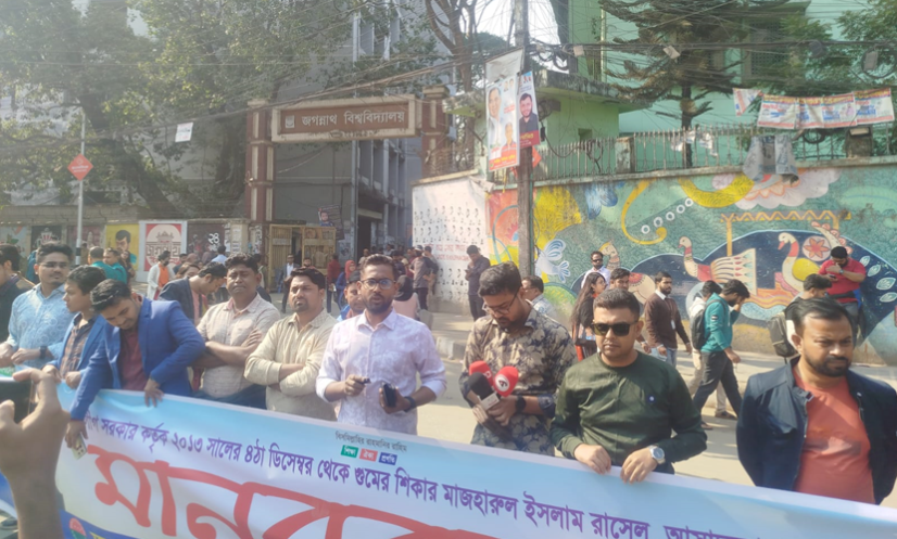 ঢাকা: বিগত সরকারের আমলে গুমের শিকার হওয়া জগন্নাথ বিশ্ববিদ্যালয়ের (জবি) তিন ছাত্রদল নেতার সন্ধানের দাবিতে মানববন্ধন করেছে বিশ্ববিদ্যালয় শাখা জাতীয়তাবাদী ছাত্রদল।