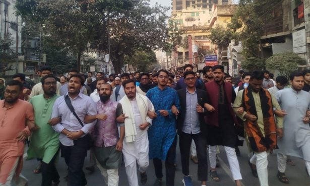 শুক্রবার (১২ ডিসেম্বর) বিকেলে ক্যাম্পাসের জিরো পয়েন্ট থেকে বিক্ষোভ মিছিল বের করেন চাকসু নেতারা। মিছিল সোহরাওয়ার্দী হল মোড় ঘুরে আবার জিরো পয়েন্টে গিয়ে শেষ হয়।