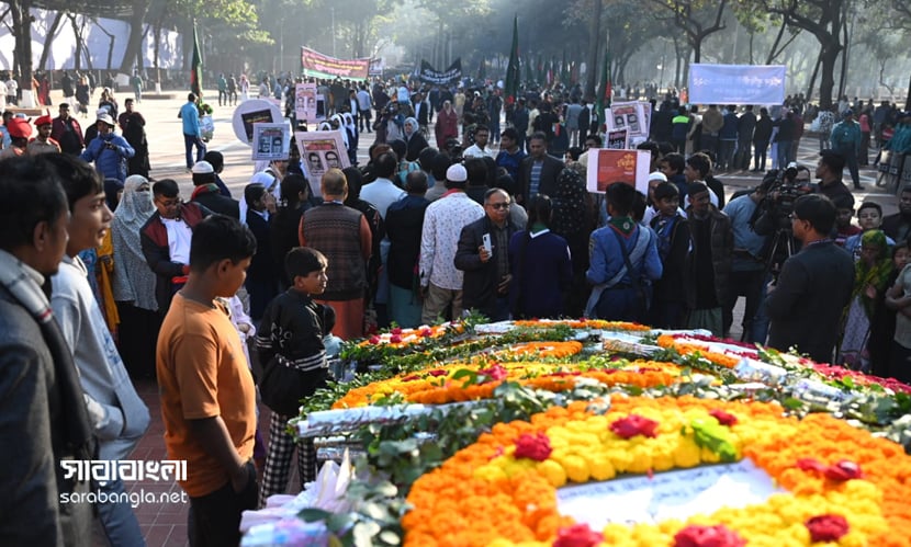সরেজমিনে দেখা যায়, শীতের কারণে সকালে মানুষের উপস্থিতি কম থাকলেও বেলা বাড়ার সঙ্গে সঙ্গে সর্বস্তরের মানুষের ঢল নামে। দলে দলে বিভিন্ন রাজনৈতিক, সামাজিক ও পেশাজীবী সংগঠন ব্যানার ও স্লোগানসহ শহিদদের প্রতি শ্রদ্ধা নিবেদন করে।