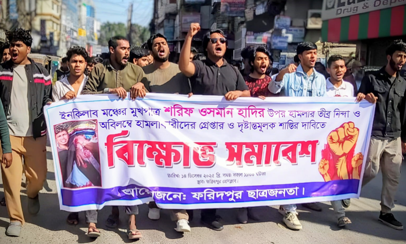 হাদির ওপর হামলার প্রতিবাদে ফরিদপুরে ছাত্র-জনতার বিক্ষোভ
