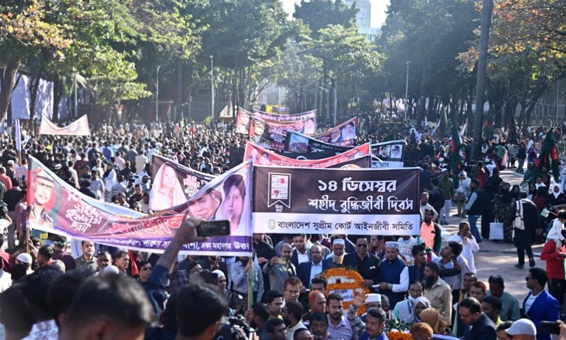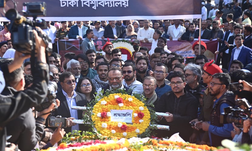 ১৪ ডিসেম্বর, শহিদ বুদ্ধিজীবী দিবস। ১৯৭১ সালের এই দিনে দখলদার পাকিস্তানি হানাদার বাহিনী ও তার দোসর রাজাকার আল-বদর, আল-শামস মিলিতভাবে বাংলার শ্রেষ্ঠ সন্তান বুদ্ধিজীবীদের হত্যা করে। বুদ্ধিজীবীদের হত্যার ঠিক দুই দিন পর ১৬ ডিসেম্বর জেনারেল নিয়াজির নেতৃত্বাধীন বর্বর পাকিস্তানি বাহিনী আত্মসমর্পণ করে এবং স্বাধীন দেশ হিসেবে বাংলাদেশের অভ্যুদয় ঘটে। যথাযোগ্য মর্যাদায় শহিদ বুদ্ধিজীবী দিবস পালিত হলো আজ। এদিন সকালে রাষ্ট্রপতি ও প্রধান উপদেষ্টা মিরপুর শহিদ বুদ্ধিজীবী স্মৃতিসৌধে পুষ্পস্তবক অর্পণ করেন। এর পর তারা জাতির শ্রেষ্ঠ সন্তানদের স্মৃতির প্রতি গভীর শ্রদ্ধা জানিয়ে সেখানে নীরবে কিছুক্ষণ দাঁড়িয়ে থাকেন। এর পর শহিদ বুদ্ধিজীবী পরিবারের সদস্য, যুদ্ধাহত ও উপস্থিত বীর মুক্তিযোদ্ধারা পুষ্পস্তবক অর্পণের মধ্যদিয়ে জাতির শ্রেষ্ঠ সন্তানদের প্রতি শ্রদ্ধা জানান। তার পর উন্মুক্ত করে দেওয়া হলে সর্বস্তরের জনগণ বুদ্ধিজীবী স্মৃতিসৌধে পুষ্পস্তবক অর্পণ করেন। বুদ্ধিজীবী স্মৃতিসৌধ থেকে শ্রদ্ধা নিবেদনের ছবিগুলো ফ্রেমবন্দি করেছেন সারাবাংলার সিনিয়র ফটোকরেসপন্ডেন্ট হাবিবুর রহমান।