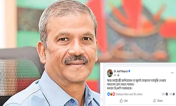 ঢাকা: ১৬ ডিসেম্বরের প্রত্যয় ছিল দেখেই আমরা ঐতিহাসিক জুলাই গণঅভ্যুত্থানের মাধ্যমে বাংলাদেশকে পুনর্নির্মাণের একটা সুযোগ করে দিতে পেরেছি বলে জানিয়েছেন অন্তর্বর্তী সরকারের আইন বিচার ও সংসদ বিষয়ক মন্ত্রণালয়ের উপদেষ্টা ড. আসিফ নজরুল।
