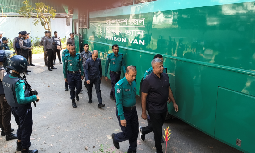 ট্রাইব্যুনালে নেওয়া হচ্ছে সেনা কর্মকর্তাদের। ছবি: সারাবাংলা