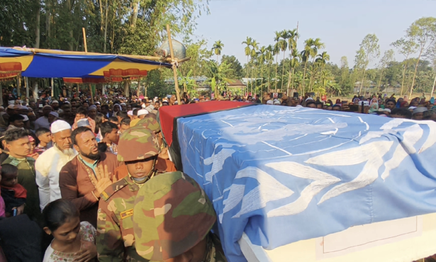 রাজবাড়ী: সুদানের আবেই এলাকায় জাতিসংঘ শান্তিরক্ষা মিশনে দায়িত্ব পালনকালে সন্ত্রাসীদের ড্রোন হামলায় নিহত বাংলাদেশ সেনাবাহিনীর শান্তিরক্ষী রাজবাড়ীর শামীম রেজার (২৮) রাষ্ট্রীয় ও সামরিক মর্যাদায় জানাজা ও দাফন সম্পন্ন হয়েছে।