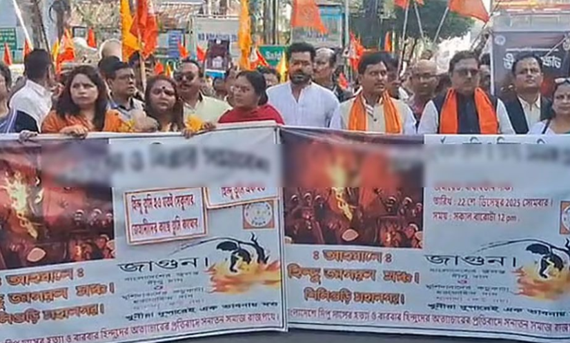 জানা গেছে, বাংলাদেশে হিন্দুদের ওপর নির্যাতন চলছে এমন অভিযোগ করে সোমবার (২২ ডিসেম্বর) দুপুর ১২টা নাগাদ বিশ্ব হিন্দু পরিষদ (ভিএইচপি) ও হিন্দু জাগরণ মঞ্চের নেতাকর্মীরা শিলিগুড়ির বাঘাযতীন পার্কে জমায়েত হয়। এরপর দুপুর ১২টার দিকে প্রতিবাদ মিছিল বের করে তারা। শহরের বিভিন্ন অংশ ঘুরে সে মিছিল পৌঁছে যায় বাংলাদেশ ভিসা সেন্টারের সামনে।