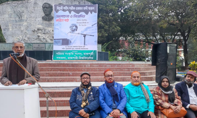 রাজশাহী: চব্বিশের জুলাই অভ্যুত্থানের সম্মুখভাগের যোদ্ধা ও ইনকিলাব মঞ্চের মুখপাত্র শরিফ ওসমান বিন হাদির স্মরণে আলোচনা ও নিবেদিত কবিতা পাঠ অনুষ্ঠানের আয়োজন করে রাজশাহী সংস্কৃতি সংসদ এবং রাজশাহী বিশ্ববিদ্যালয় শব্দকলা।