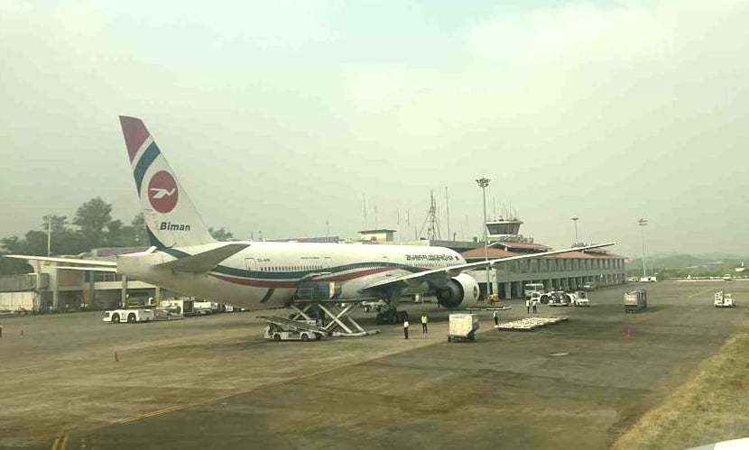 সিলেট ওসমানী আন্তর্জাতিক বিমানবন্দরে তারেক রহমানকে বহনকারী বিমান।