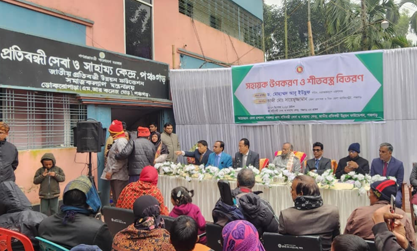 পঞ্চগড়: পঞ্চগড়ে প্রতিবন্ধী ব্যক্তিদের জীবনমান উন্নয়নের লক্ষ্যে সহায়ক উপকরণ ও শীতবস্ত্র বিতরণ করা হয়েছে। পঞ্চগড় জেলা প্রশাসন এবং প্রতিবন্ধী সেবা ও সাহায্য কেন্দ্র, জাতীয় প্রতিবন্ধী উন্নয়ন ফাউন্ডেশনের আয়োজনে শনিবার (২৭ ডিসেম্বর) সকালে পঞ্চগড় প্রতিবন্ধী সেবা ও সাহায্য কেন্দ্র প্রাঙ্গণে এ কর্মসূচি অনুষ্ঠিত হয়।
