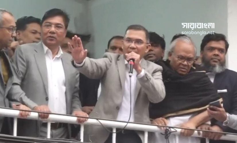 নেতাকর্মীদের উদ্দেশ্যে কথা বলছেন তারেক রহমান।