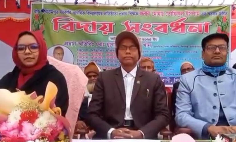 চাঁপাইনবাবগঞ্জ: দীর্ঘ ৩৭ বছর শিক্ষকতা শেষে অশ্রুসিক্ত ভালোবাসায় চাঁপাইনবাবগঞ্জে রাজ নরোত্তমপুর সরকারি প্রাথমিক বিদ্যালয়ের প্রতিষ্ঠাতা প্রধান শিক্ষক তোফিকুল ইসলামকে বিদায় সংবর্ধনা দেওয়া হয়েছে।