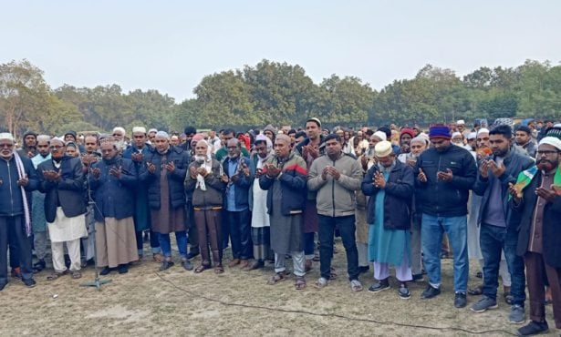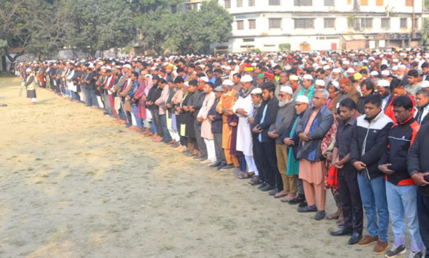 হাকিমপুর উপজেলায় বোয়ালদাড় ইউনিয়ন স্কুল মাঠে এই জানাজা অনুষ্ঠিত হয়। ছবি: সারাবাংলা