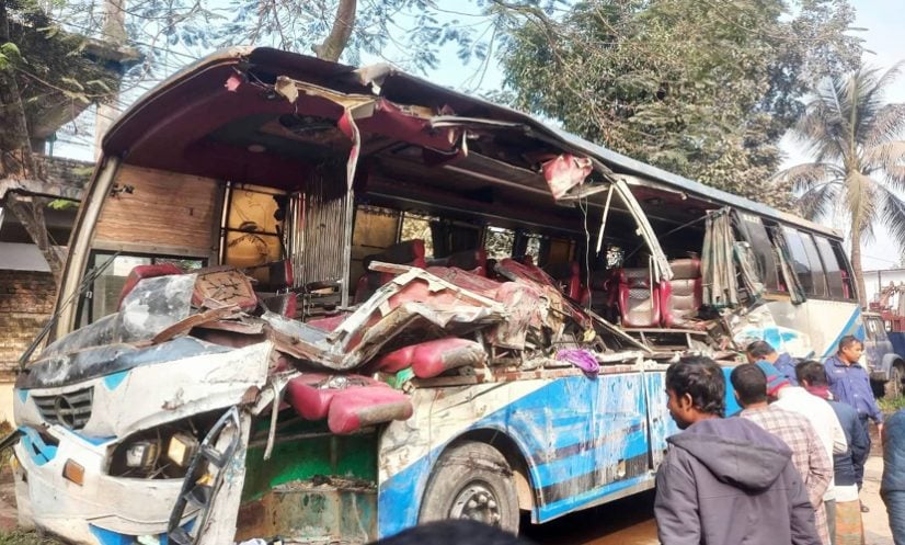 নিহত বাসের যাত্রীরা হলেন- রংপুরের পীরগঞ্জ উপজেলার হারুন মিয়ার ছেলে জামিল মিয়া (২২) ও একই এলাকার মুছা মিয়া (২৫)।