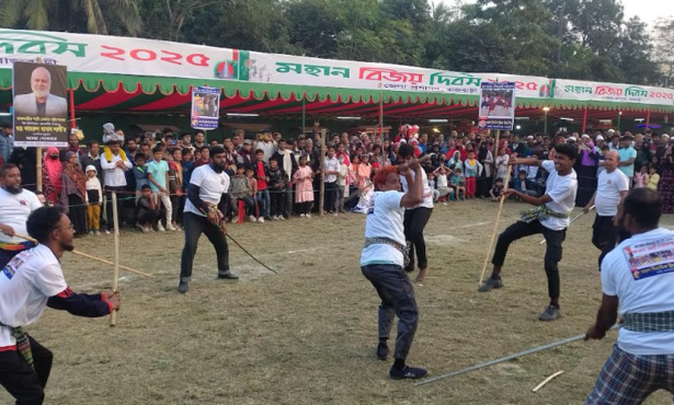 দিনের শুরুতেই মাঠে উৎসবমুখর পরিবেশ সৃষ্টি হয়। বিলুপ্তপ্রায় লাঠিখেলা দেখতে বিভিন্ন পাড়া-মহল্লা থেকে সব বয়সী মানুষ ভিড় জমান। ঢোল ও হারমোনিয়ামের তালে তালে লাঠিয়ালদের কৌশলী আঘাত ও ছন্দময় ভঙ্গিমা দর্শকদের মুগ্ধ করে। দীর্ঘদিন পর এমন ঐতিহ্যবাহী খেলা দেখতে পেয়ে অনেকেই উচ্ছ্বাস প্রকাশ করেন। এ ছাড়া হাঁসখেলা ও শিশুদের বিভিন্ন খেলায় অংশগ্রহণকারীদের মধ্যে ব্যাপক উৎসাহ দেখা যায়। শিশুদের আনন্দ-উল্লাসে পুরো মাঠ মুখরিত হয়ে ওঠে।