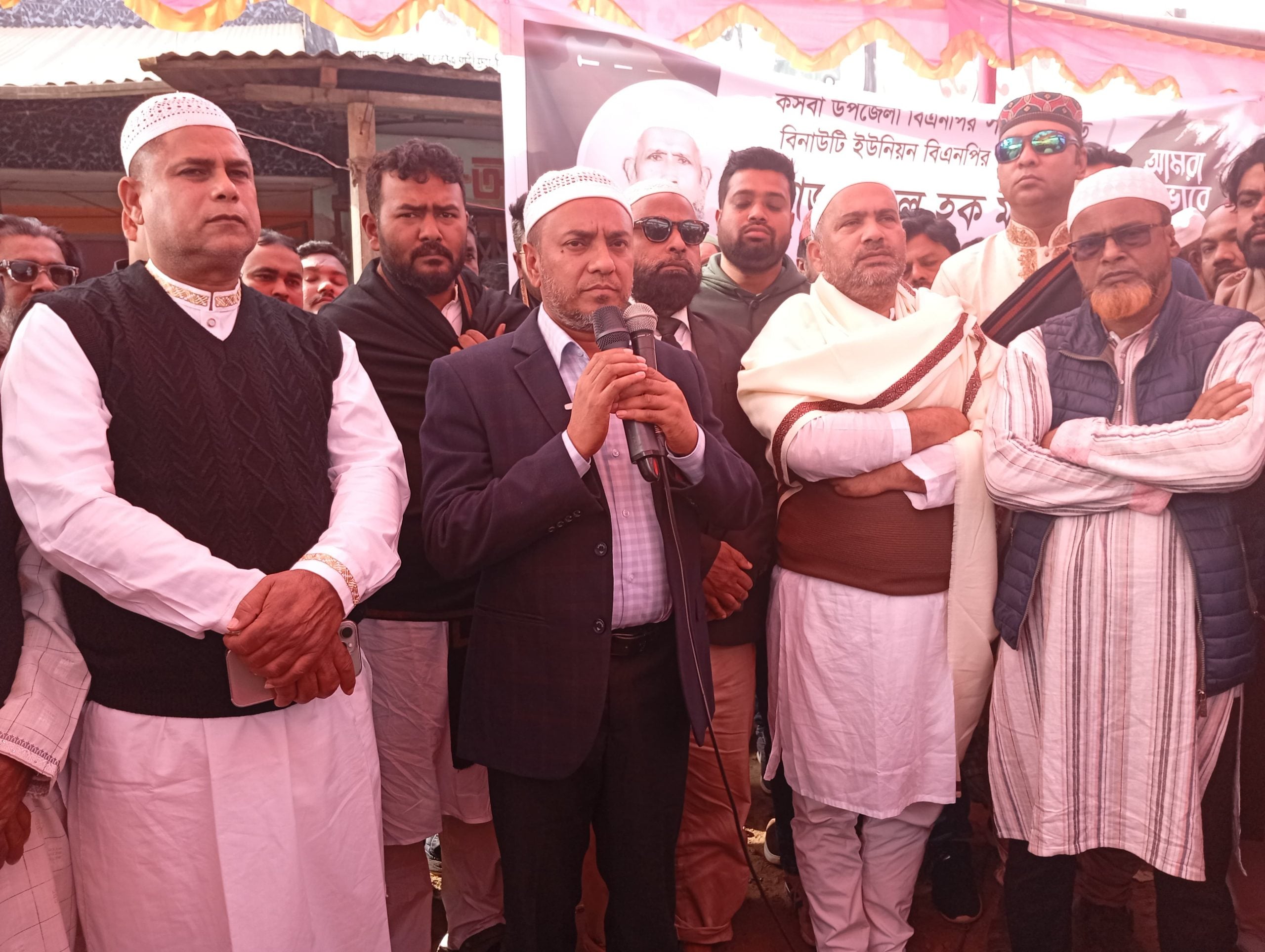 জানাজায় অংশ নিয়ে কথা বলছেন বিএনপির প্রার্থী কবীর আহমেদ ভূঁইয়া