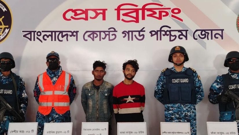 বাগেরহাট: রিসোর্ট মালিকসহ দুই পর্যটক অপহরণকারী মাসুম বাহিনীর প্রধান মাসুম মৃধা (২৩) ও তার সহযোগী মো. ইফাজ ফকির (২৫)-কে আটক করেছে কোস্টগার্ড। তাদের কাছ তিনটি দেশীয় পাইপগান, আট রাউন্ড কার্তুজ, একটি চাইনিজ কুড়াল, দুটি দেশীয় কুড়াল, একটি দা, একটি স্টিল পাইপ ও মাদক সেবনের সরঞ্জাম উদ্ধার করা হয়। এছাড়াও জিম্মি পর্যটকদের পাঁচটি মোবাইল ফোন এবং একটি হাতঘড়ি উদ্ধার করা হয়েছে।