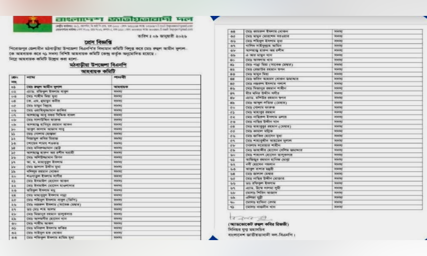 প্রেস বিজ্ঞপ্তিতে আরও উল্লেখ করা হয়, কেন্দ্রীয় নির্দেশনা অনুযায়ী আহ্বায়ক কমিটি নির্ধারিত সময়ের মধ্যে পূর্ণাঙ্গ কমিটি গঠনের উদ্যোগ নেবে এবং দলীয় শৃঙ্খলা ও আদর্শ বজায় রেখে রাজনৈতিক কর্মসূচি বাস্তবায়ন করবে।