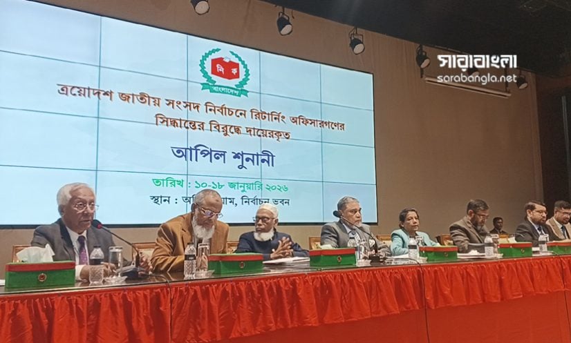 শনিবার (১০ জানুয়ারি) রাজধানীর আগারগাঁওয়ের নির্বাচন ভবনের অডিটরিয়ামে এ শুনানি অনুষ্ঠিত হয়। প্রধান নির্বাচন কমিশনার (সিইসি) এএমএম নাসির উদ্দিনের সভাপতিত্বে শুনানিতে অন্য নির্বাচন কমিশনাররাও অংশ নেন। সকাল ১০টা থেকে বিকেল পৌনে ৫টা পর্যন্ত এ আপিল নিষ্পত্তি করে ইসি।