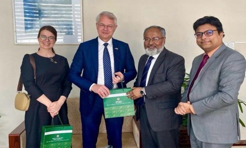 বাংলাদেশ সফররত ফিনল্যান্ডের অনাবাসী রাষ্ট্রদূত কিমো লাহদেভির্তা বুধবার (১৪ জানুয়ারি) পররাষ্ট্র মন্ত্রণালয়ের সচিব (পূর্ব ও পশ্চিম) ড. মো. নজরুল ইসলামের সাথে সৌজন্য সাক্ষাৎকালে দুই পক্ষ এই প্রতিশ্রুতি পুনর্ব্যক্ত করে। সাক্ষাৎকালে বৈঠকে উভয় পক্ষ দ্বিপাক্ষিক সম্পর্কের ধারাবাহিক অগ্রগতিতে সন্তুষ্টি প্রকাশ করে। একইসাথে বিশেষ করে বাণিজ্য, বিনিয়োগ, পরিষ্কার শক্তি, ডিজিটাল পরিষেবা এবং বস্ত্র খাতে সহযোগিতা আরও জোরদার করার প্রতিশ্রুতি পুনর্ব্যক্ত করে।