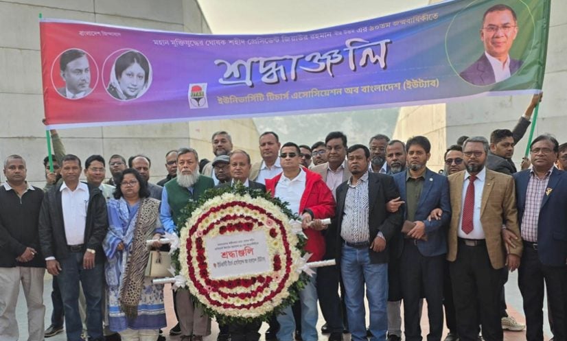 ঢাকা: বিএনপির প্রতিষ্ঠাতা ও শহিদ রাষ্ট্রপতি জিয়াউর রহমানের ৯০তম জন্মবার্ষিকী উপলক্ষে তার সমাধিতে ফুল দিয়ে শ্রদ্ধা নিবেদন করেছে ইউনিভার্সিটি টিচার্স অ্যাসোসিয়েশন অব বাংলাদেশ (ইউট্যাব)।
