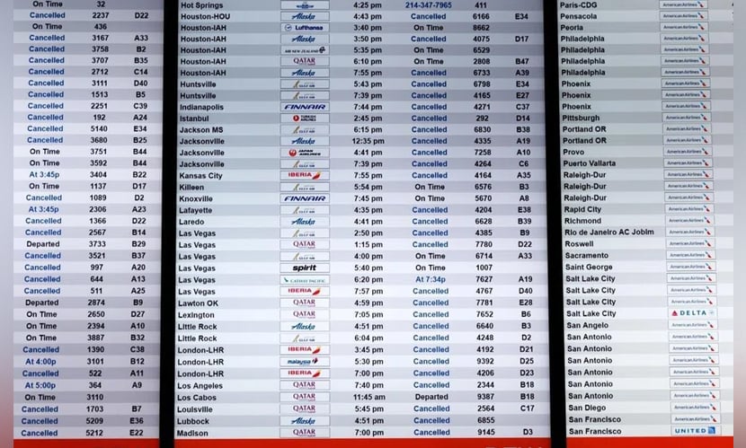 এভিয়েশন বিশ্লেষণ প্রতিষ্ঠান সিরিয়াম জানায়, ২৫ জানুয়ারির সম্ভাব্য ব্যাঘাত কিছু এয়ারলাইনের জন্য কোভিড-১৯ মহামারির পর দেখা সবচেয়ে বড় সংকটের কাছাকাছি। ২৪ জানুয়ারি নিউইয়র্ক সময় সকাল ৯টা ৩০ মিনিট পর্যন্ত মেমফিস থেকে ৯০ শতাংশ, ওকলাহোমা সিটি থেকে ৭৬ শতাংশ এবং ডালাস-ফোর্ট ওর্থ থেকে ৭৫ শতাংশ ফ্লাইট বাতিল করা হয়।