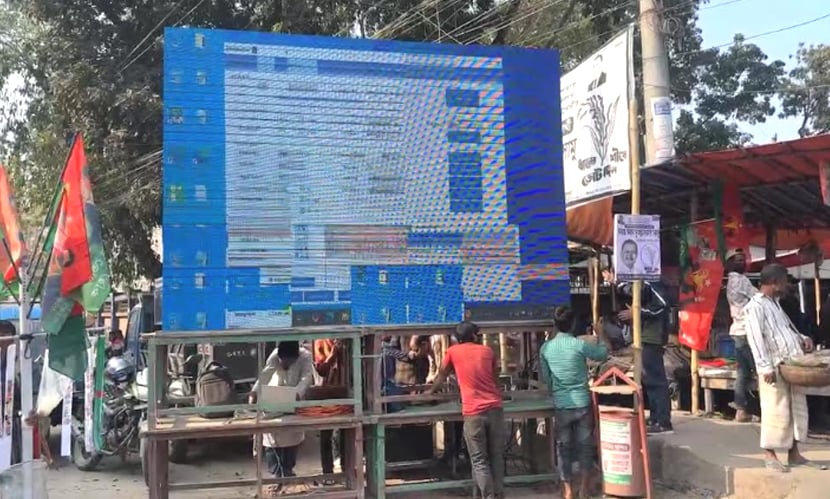 শহরের বিভিন্ন গুরুত্বপূর্ণ মোড় ও চত্বরে জায়ান্ট স্ক্রিন (এলইডি স্ক্রিন) স্থাপন করা হয়েছে। এসব স্ক্রিনের মাধ্যমে কালেক্টরেট ঈদগাহ মাঠের মূল মঞ্চ থেকে তার বক্তব্য সরাসরি সম্প্রচার করা হবে, যাতে মাঠে না আসতে পারা হাজারো মানুষও তার ভাষণ দেখে ও শুনতে পারেন। দলীয় সূত্র ও স্থানীয় প্রস্তুতি কমিটির তথ্য অনুসারে, শহরের সুরভী উদ্যান, ডিসি মোড়, জিলা স্কুল মোড়, পোস্ট অফিস মোড়, পুলিশ লাইন্স মোড়, সিটি বাজারসহ অন্যান্য কয়েকটি কেন্দ্রীয় স্থানে এই জায়ান্ট স্ক্রিনগুলো বসানো হয়েছে।