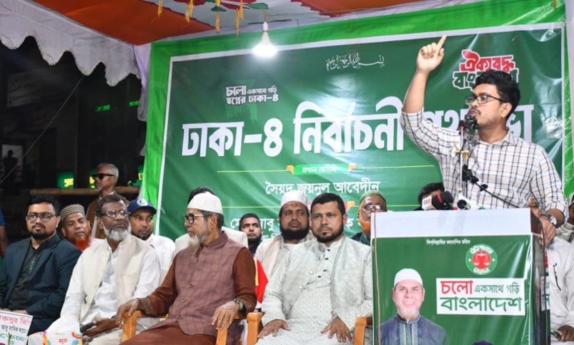 ১১ দলীয় জোট সমর্থিত দাঁড়িপাল্লা প্রতীকে ঢাকা-৪ আসনের সংসদ সদস্য প্রার্থী সৈয়দ জয়নুল আবেদীন বলেন, জামায়াতে ইসলামী একটি মজলুম সংগঠন। আমাদেরকে মানুষের কাছে যেতে দেওয়া হয়নি। আমাদের কেন্দ্রীয় অফিস থেকে শুরু করে ওয়ার্ড পর্যায়ের অফিস গুলোও বন্ধ করে দেওয়া হয়েছে। আমাদের নিবন্ধন বাতিল করা হয়েছে। সবশেষ আমাদেরকে নিষিদ্ধ করা হয়েছে। কিন্তু এতো জুলুম-নির্যাতনের পরও জামায়াতে ইসলামীকে জনগণ থেকে বিচ্ছিন্ন করা যায়নি, যাবে না। যারা বিদেশে পালিয়ে ছিল তারাই এখন লম্বা লম্বা কথা বলে।