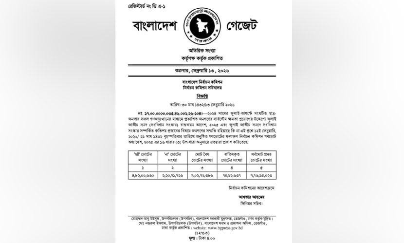 শুক্রবার (১৩ ফেব্রুয়ারি) দিবাগত রাতে ইসি সচিবালয় থেকে এই গেজেট জারি করা হয়।
