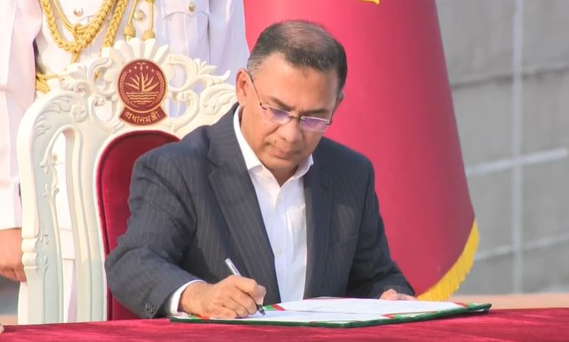 আজ বিকেল ৪টায় পবিত্র কোরআন তেলাওয়াতের মাধ্যমে অনুষ্ঠানের সূচনা হয়। এরপর সুসজ্জিত মঞ্চে রাষ্ট্রপতি ও নতুন প্রধানমন্ত্রী আসন গ্রহণ করেন। শপথ গ্রহণ শেষে প্রধানমন্ত্রী তারেক রহমান শপথ পত্রে স্বাক্ষর করেন। অনুষ্ঠানে দেশি-বিদেশি কূটনীতিক, বিভিন্ন রাজনৈতিক দলের শীর্ষ নেতৃবৃন্দ এবং রাষ্ট্রের উচ্চপদস্থ সামরিক ও বেসামরিক কর্মকর্তারা উপস্থিত ছিলেন।