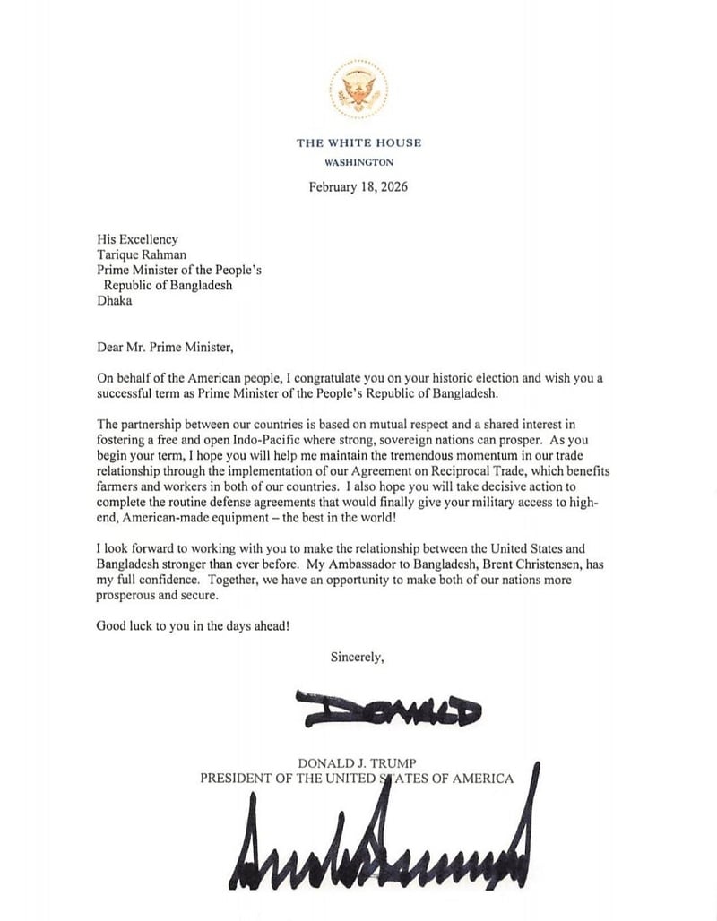 তারেক রহমানকে ট্রাম্পের লেখা চিঠিটি-