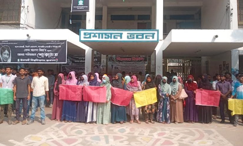 বিক্ষোভে শিক্ষার্থীরা ‘ফাঁসি ফাঁসি ফাঁসি চাই, হত্যাকারীর ফাঁসি চাই’, ‘আমার ম্যাম হত্যা কেনো? প্রশাসন জবাব চাই’, ‘আমার ম্যামের রক্ত, বৃথা যেতে দেবো না’, ‘নিরাপদ ক্যাম্পাস চাই’ ও ‘ইবি কেনো রক্তাক্ত? প্রশাসন বিচার চাই’- স্লোগান দেয়।