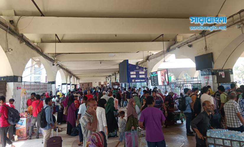 কমলাপুর রেলস্টেশনের পাশাপাশি আশপাশের বাস কাউন্টারগুলোতেও যাত্রীদের বাড়তি চাপ লক্ষ্য করা গেছে, যা ঈদযাত্রার সার্বিক চাপের চিত্রই তুলে ধরছে।