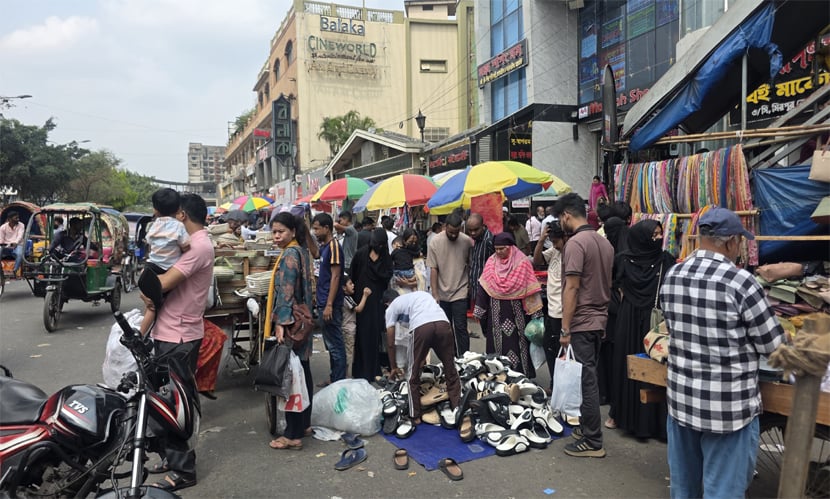 সরেজমিনে দেখা গেছে, রঙিন পোশাক, ঝলমলে অলংকার আর নতুন জুতার খোঁজে পরিবার-পরিজন নিয়ে দলে দলে ছুটছেন ক্রেতারা। শিশুদের উচ্ছ্বাস, তরুণদের ফ্যাশন সচেতনতা আর নারীদের ব্যস্ততা। সব মিলিয়ে পুরো এলাকা যেন এক প্রাণবন্ত উৎসবের মঞ্চে রূপ নিয়েছে। প্রতিটি দোকানের সামনে ভিড়, কোথাও কোথাও পছন্দের পোশাক কিনতে দাঁড়াতে হচ্ছে দীর্ঘ লাইনে।