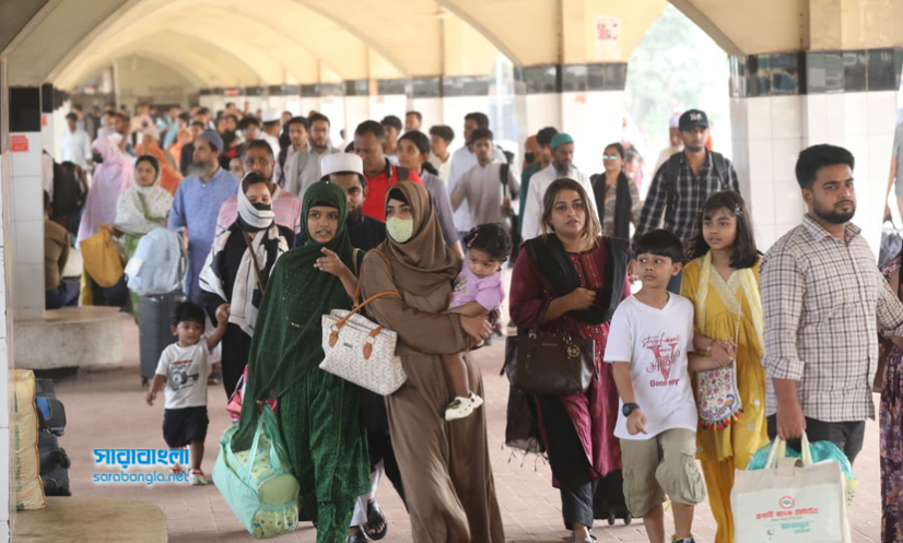 কমলাপুর রেলওয়ে স্টেশনে ঘরমুখো যাত্রীদের ভিড়। ছবি: সারাবাংলা