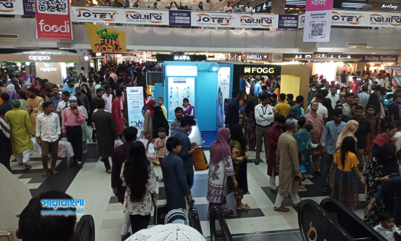 শেষ মুহূর্তের ঈদ কেনাকাটার ভিড় অভিজাত শপিংমলগুলোতে