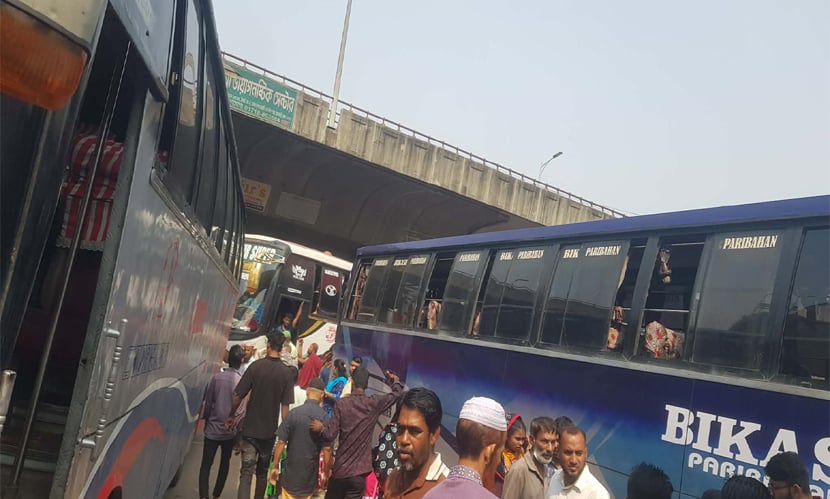 সন্ধ্যায় চাঁদ দেখা গেলে কাল ঈদ। সে হিসেবে ঈদের আগের দিন, উপচে পড়া ভিড় বা জীবনের ঝুঁকি নিয়ে বাসের ছাদে ওঠার দৃশ্য কিছুটা কমলেও, টিকিট না পাওয়ার হাহাকার বিন্দুমাত্র কমেনি। টিকিট না পেয়ে সাধারণ মানুষের ভোগান্তি এখন চরমে পৌঁছেছে।