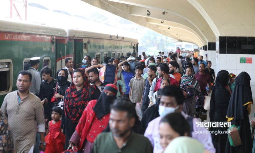 ঈদ যাত্রার শেষ মুহূর্তে ঘরমুখো মানুষের চাপ কমলাপুরে