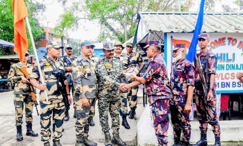 হিলি: পবিত্র ঈদুল ফিতরের আনন্দ ভাগাভাগি করে নিতে দিনাজপুরের হিলি সীমান্তে মিষ্টি উপহার দিয়ে শুভেচ্ছা বিনিময় করেছেন বাংলাদেশ ও ভারতের সীমান্তরক্ষী বাহিনী।