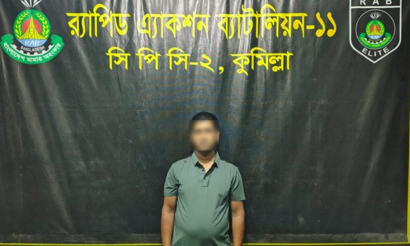 মঙ্গলবার (২৪ মার্চ) গভীর রাতে কুমিল্লার বুড়িচং উপজেলার শংকুচাইল এলাকা থেকে অভিযান চালিয়ে তাকে গ্রেফতার করা হয় বলে র্যাব-১১ সূত্র জানিয়েছে।