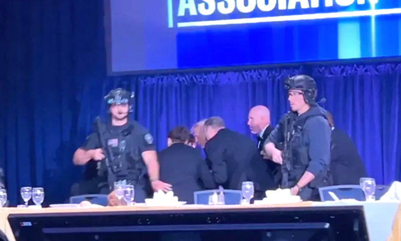 যুক্তরাষ্ট্রের রাজধানী ওয়াশিংটন ডিসিতে একটি হোটেলে সাংবাদিকদের সঙ্গে নৈশভোজ অনুষ্ঠানে গুলির শব্দ শোনা যাওয়ার পর জরুরি ভিত্তিতে প্রেসিডেন্ট ডোনাল্ড ট্রাম্প ও তার স্ত্রী মেলানিয়া ট্রাম্পকে দ্রুত মঞ্চ থেকে সরিয়ে নিরাপদ স্থানে নিয়ে যাওয়া হয়।