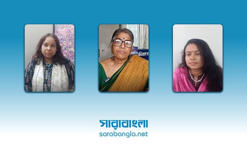 কর্মজীবী নারী সংগঠনের প্রকল্প ব্যবস্থাপক ফারহানা তিথি, নারী বিষয়ক সংস্কার কমিশনের প্রধান শিরিন পারভীন হক ও কর্মজীবী নারী সংগঠনের ডেপুটি ডিরেক্টর রাবিতা ইসলাম – ছবি : সারাবাংলা