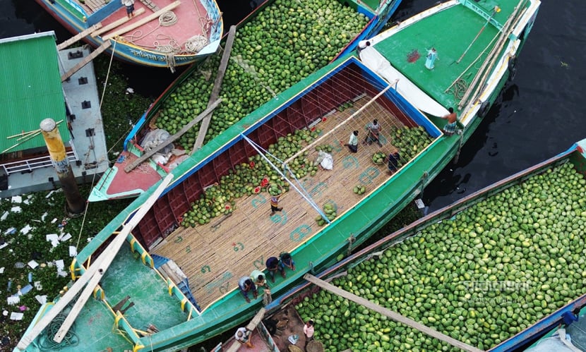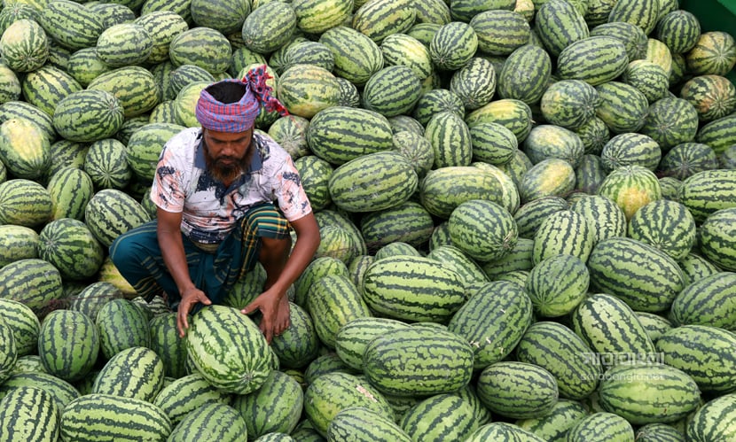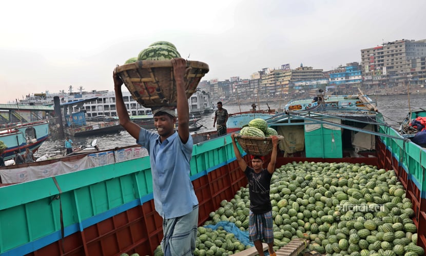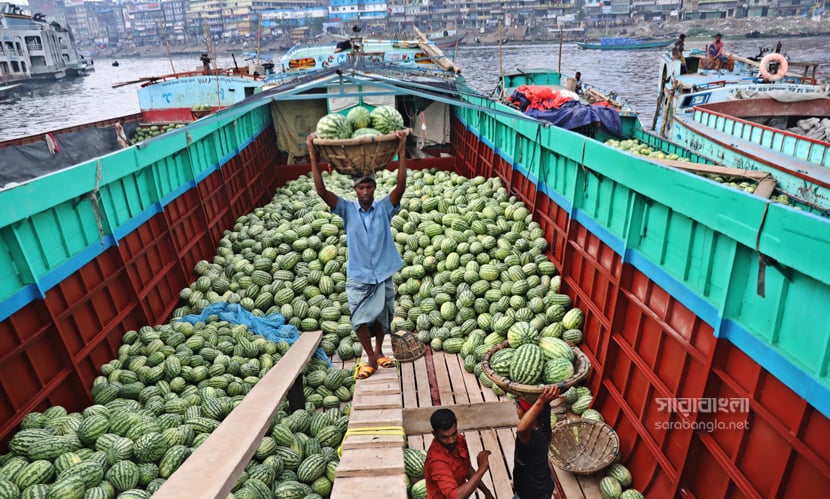 গরম না আসতেই গ্রীষ্মকালীন ফল তরমুজে সয়লাব বাজার। এ বছর আবহাওয়া অনুকূলে থাকায় তরমুজের বাম্পার ফলন হয়েছে। রাজধানী ঢাকায় যত তরমুজ আসে তার বেশিরভাগই দক্ষিণাঞ্চলের। লঞ্চ কিংবা ট্রলারে করে তরমুজগুলো আসে পুরান ঢাকার ওয়াইজঘাটে। যেটাকে তরমুজের হাটও বলা যায়। সেখানে সারি সারি ট্রলার থেকে নামানো হচ্ছে হাজার হাজার তরমুজ। বরিশাল, ভোলা, পটুয়াখালী ও বরগুনা থেকে আসা এসব তরমুজ আকারে বড় এবং মানেও বেশ ভালো। সেখান থেকে পাইকাররা তরমুজ কিনে ছড়িয়ে পড়ে রাজধানী জুড়ে। রাজধানীর ওয়াইজঘাট থেকে ‘তরমুজ হাটের’ ছবিগুলো তুলেছেন সারাবাংলার সিনিয়র ফটোকরেসপন্ডেন্ট হাবিবুর রহমান।