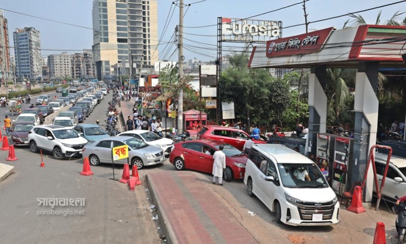 ইরানের সঙ্গে যুক্তরাষ্ট্র-ইসরাইলের সংঘাত শুরুর পর থেকেই জ্বালানি নিয়ে অস্থিরতা তৈরি হয়েছে গোটা বিশ্বেই। এর প্রভাব পড়েছে বাংলাদেশেও। দেশেই উৎপাদন হওয়ায় পেট্রোল বা অকটেন সংকটের শঙ্কা নেই। ডিজেল নিয়ে কিছুটা উদ্বেগ থাকায় পরিস্থিতি স্বাভাবিক করতে বিকল্প উৎসের খোঁজ চলছে বলে জানিয়েছে সরকার। তার পরও ফিলিং স্টেশনগুলোতে ভিড় করছেন অনেকে। জ্বালানি নিতে ঢাকায় ফিলিং স্টেশনের সামনে লম্বা লাইনে যানবাহনের অপেক্ষা। কখনো লাইনে দাঁড়ানো নিয়ে বাকবিতণ্ডা, আবার কখনো চাহিদা মতো জ্বালানি না পেয়ে বিশৃঙ্খল পরিস্থিতি তৈরির খবরও আসছে। সম্প্রতি রাজধানীর ফিলিং স্টেশনগুলো ঘুরে জ্বালানি চাহিদার চিত্র তুলে এনেছেন সারাবাংলার সিনিয়র ফটো করেসপন্ডেন্ট হাবিবুর রহমান।