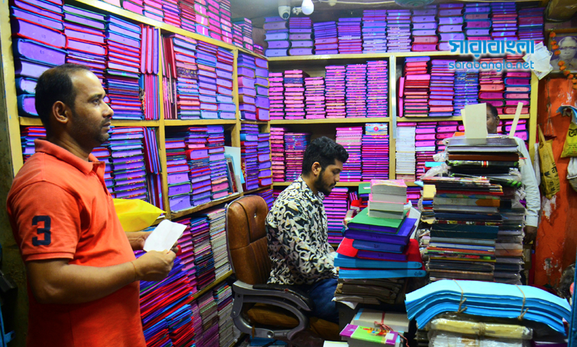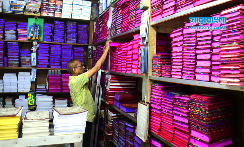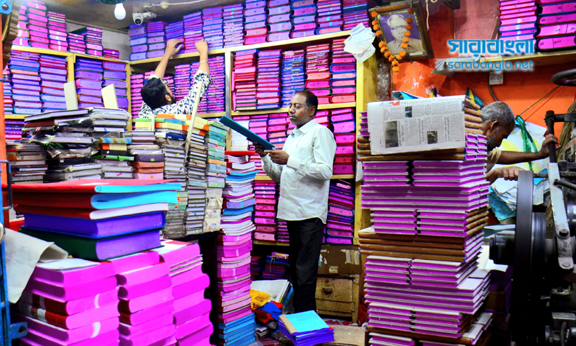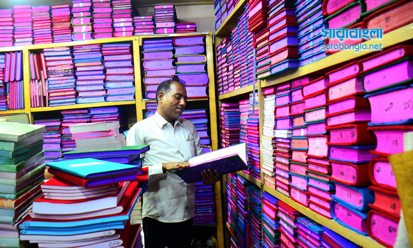 কারিগরদের নিপুণ হাতে লাল শালু কাপড়ে বাঁধানো এই খাতাগুলো যেন কেবল কাগজের স্তূপ নয়, বরং শত বছরের ঐতিহ্যের স্মারক। আধুনিকতার ভিড়েও পুরোনো প্রথাকে ভালোবেসে চট্টগ্রামের ব্যবসায়ীরা আজও নতুন বছরে বুক খোলেন এই লাল খাতার। ছবিগুলো তুলেছেন সারাবাংলার স্টাফ ফটোকরেসপন্ডেন্ট শ্যামল নন্দী।