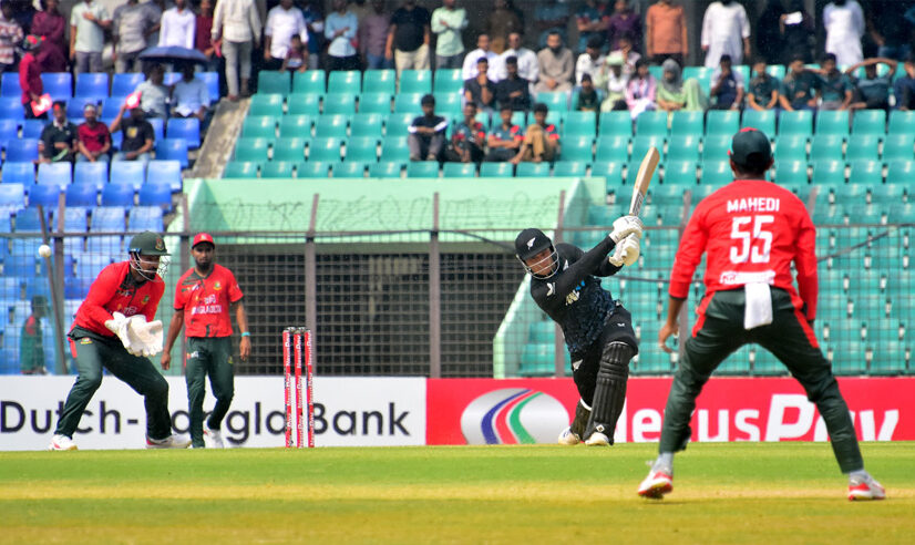 খানিক বাদে ১ রান করা বেভন জ্যাকবসকে তানজিম হাসান সাকিব ও ৩ রান করা ড্যান ফক্সক্রফটকে ফেরান শেখ মাহেদি। প্রথম ১০ ওভারে ১০০ রান করা নিউজিল্যান্ড পরের ৫ ওভারে তুলতে পেরেছে মাত্র ৩০ রান। তবে শেষ দিকে এই গ্যাপ পুরন করে দিয়েছেন নিক কেলি। শরিফুল ইসলামের বলে আউট হওয়ার আগে ২৭ বলে ৩৯ রান করে কিউইদের রানকে শক্ত অবস্থানে নিয়েছেন।