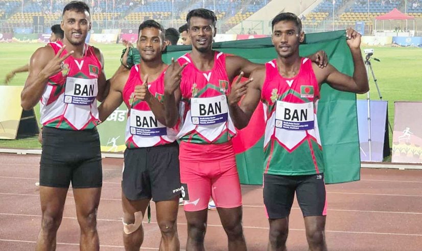 পাকিস্তানকে ছাড়া ভারতের রাঁচিতে চলছে সাফ অ্যাথলেটিক্স চ্যাম্পিয়নশিপ। প্রথম দিন কোনো পদক না পেলেও দ্বিতীয় দিনে অবশেষে হাসি ফুটেছে বাংলাদেশের মুখে—পুরুষদের ৪×১০০ মিটার রিলেতে এসেছে একটি ব্রোঞ্জ পদক।