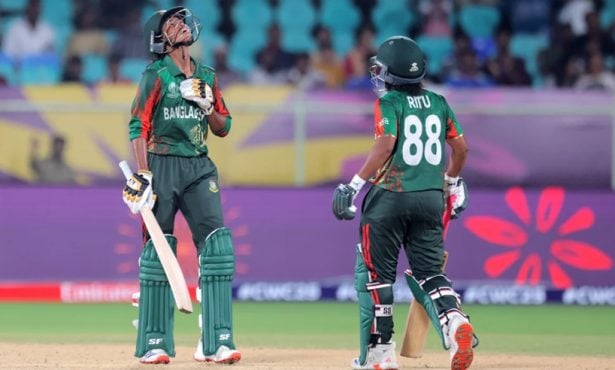 রোববার (২৬ অক্টোবর) মুম্বাইয়ে টস হেরে প্রথমে ব্যাটিং করতে নামে বাংলাদেশ। শুরু থেকেই ব্যাটিংয়ে ছিল ধীর গতির। ওপেনার সুমাইয়া ৬ বলে ২ রান করে ফিরেন। অপর ওপেনার রুবাইয়া হায়দার ঝিলিকও বেশ ধীরগতিতে খেলেন—৩২ বলে ১৩ রান করার পর আক্রমণাত্মক হতে গিয়ে আউট হন।